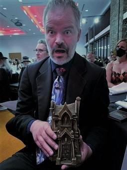 “I have a display case in my living room,” he said. “It will join such treasures as my Splatterpunk Award and the trophy I won at Necon for successfully identifying one-star reviews of my own work.”