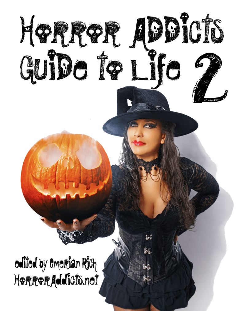 Horror Hostess Emerian Rich created HorrorAddicts.net as a forum for other creators to explore all aspects of the horror lifestyle. Her latest project, Horror Addicts Guide to Life 2, brings together years of that exploration and packs everything into one book. And we’re talking EVERYTHING.