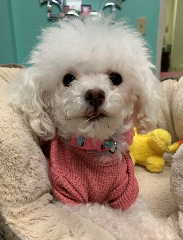 For example, when our tiny white poodle Tillie came into our lives, she was in rough shape. The previous owner had a debilitating disease and couldn’t take care of her anymore. Tillie’s hair was matted so thick over her eyes and feet. It was heartbreaking. I remember the blood-curdling screams she made when she had to have all that hair cut off. Poor Tillie. She was removed from her home, probably felt like she was being tortured, and our jealous 15-year-old dog Mollie wouldn’t give her the time of day. I worried about how Tillie would fit in. I forget how long it took, but one day I opened the back door to let the dogs go weewee, and Tillie ran out, hopping like a deer, alongside Mollie. It was the first time I’d seen her act like she truly belonged to our little family. I teared up quite a bit. Why? Joy.