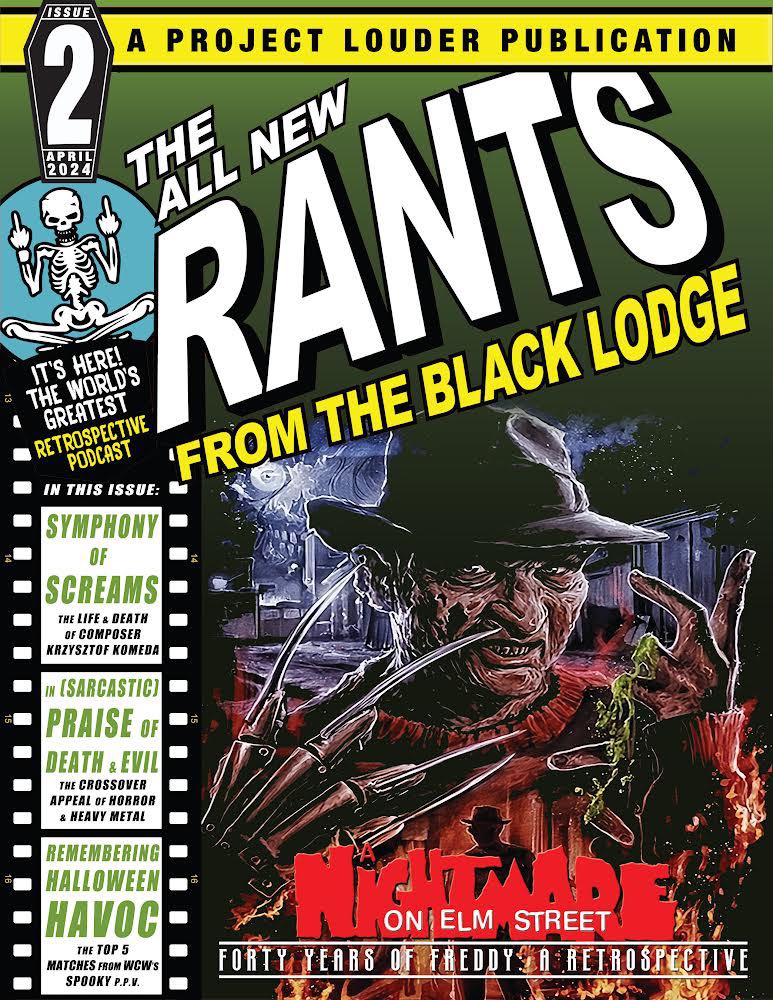 The magazine is a passion project of Rants From The Black Lodge, a film retrospective podcast hosted by movie critic and pop culture enthusiast Brandon A. Lane. In October 2023, Lane published Issue 1 of the full-color print magazine. It featured a retrospective on the movie Carrie, a page on horror gaming, a Salem’s Lot tribute, a Scream Queen of the Month complete with bikini and tattoos, and a retrospective on the 1997 Hell in a Cell pro wrestling match. Read the digital version of Issue 1 for free at ProjectLouder.net.